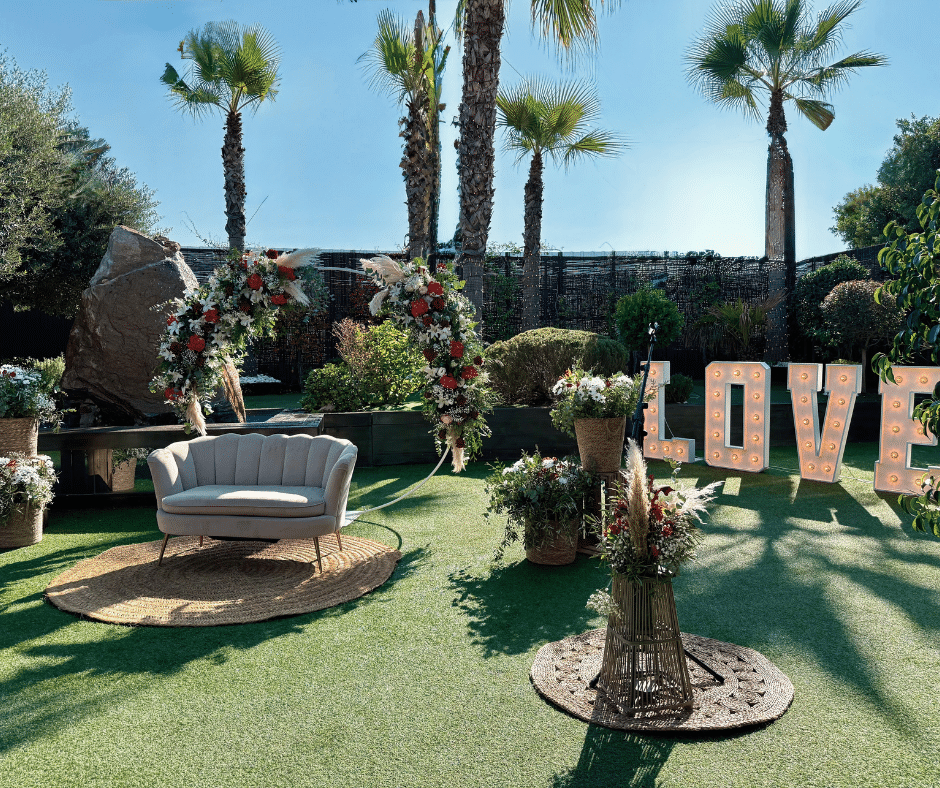 Los jardines de nuestros salones son un lugar versátil y elegante, diseñado para hacer de cada celebración un momento único. Rodeados de belleza natural, ofrecen el escenario perfecto para bodas civiles totalmente personalizadas, donde cada detalle refleja vuestra historia de amor. Un espacio mágico donde los sueños se hacen realidad y vuestro amor brilla con luz propia